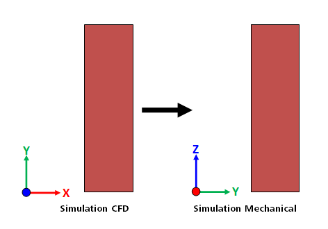 - Because only the Z axis can be used as the axis of symmetry for axisymmetric models in Simulation Mechanical, ensure that the CFD model uses the Y axis as the axis symmetry. An error is issued if the CFD model is axisymmetric about the X axis. (As with all 2D models, re-orient the model to the YZ plane using the mappings shown above prior to launching into Simulation Mechanical.)