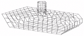 This section shows two models. The free-form model, shape, will be used to show what happens when the feature angle is too small. The more geometric model, tank, will be used to show what happens when the feature angle is too large. Both of these models can be meshed reasonably well using the default settings for feature angle and curve angle. Figures 1 and 2 show the meshes created with the default settings. The feature lines created in the feature.fem are acceptable. Figures 3 and 4 show the feature lines for the models.