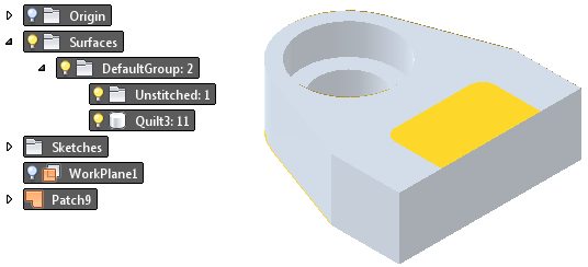 Utilizzare il comando Unisci per sostituire più facce o superfici con una sola superficie. In genere questo comando viene utilizzato per correggere i modelli importati contenenti facce aggiuntive o per semplificare un modello per l'analisi.