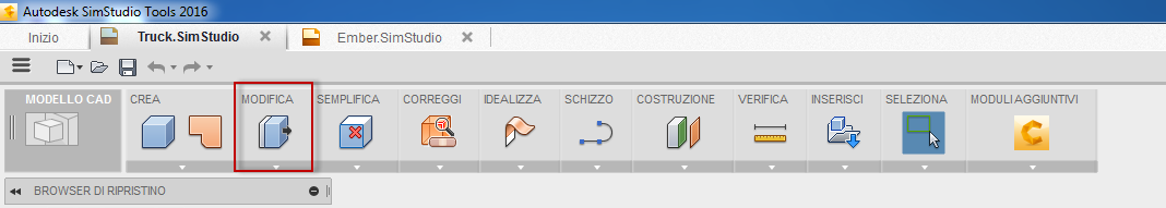 Tutti i comandi riportati di seguito si trovano nel pannello MODIFICA.