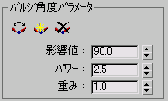 他のバルジの効果に対する、現在のバルジ角度の効果の相対的な重みを指定します。指定できる範囲は 0.0 から 100.0 です。既定値は 1.0 です。