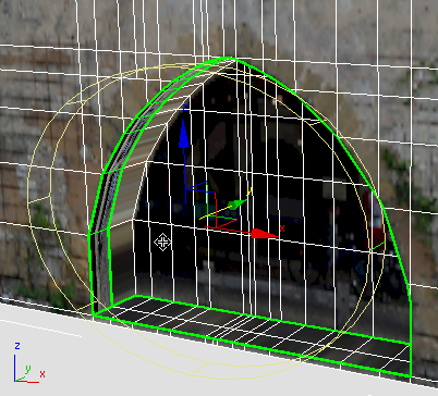 3ds Max によって円柱状のギズモがアーチのジオメトリにフィットします。