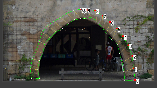 内側の拱廊の面をマッピングする手順は、必要に応じて実施してください。ここで説明する手順は、石壁の面の手順とほぼ同じですが、以下の点が異なります。