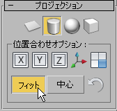 3ds Max によって[UVW アンラップ](Unwrap UVW)の投影の円柱状ギズモが表示されます。
