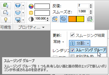 [分割](Separate)ドロップダウン リストで、[スムージング グループ](Smoothing Groups)をオンにします。