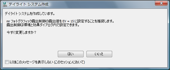 を開いた場合、シーンには既に対数型露出コントロールが含まれ、このプロンプトは表示されません。