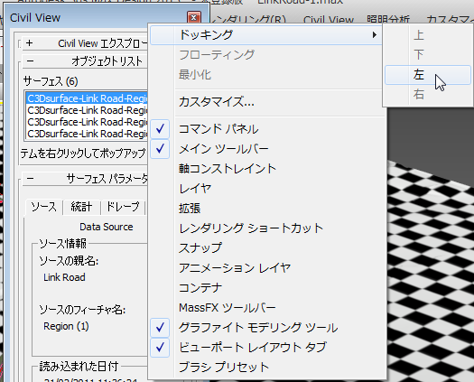 [左]を選択します。ドッキングすると、Civil View の作業を長時間行う場合に便利です。