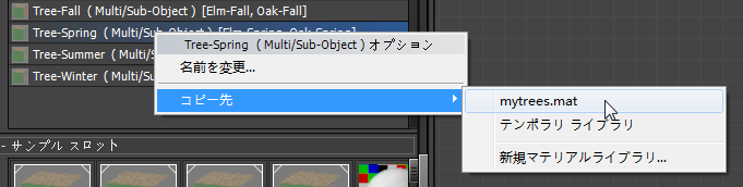 保存したいのは、この 4 つの Tree マテリアルです。