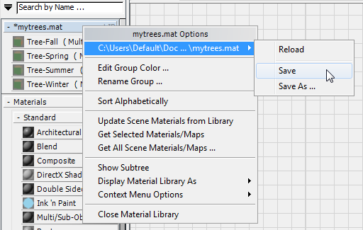 3ds Max のマテリアル/マップ ブラウザの一番上に新しいライブラリのエントリが表示されます。