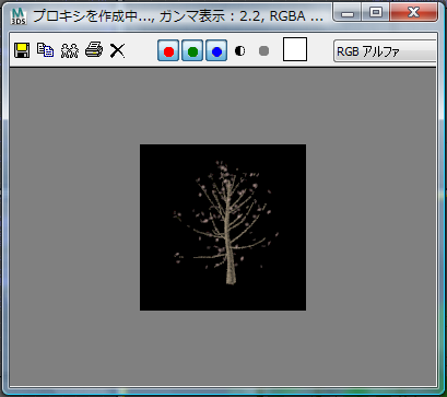 プロキシ ジオメトリのレンダリング中は、3ds Max によって一時的に小さなレンダリング フレーム ウィンドウが表示されます。