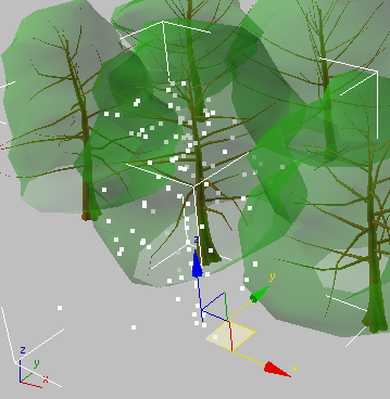 これらの木は、「ビルボードの木のマップの作成」のレッスンで説明した方法で作成し、テクスチャを適用したものです。唯一の違いは、各ツリーをビューポートの中心に配置してレンダリングする必要がなかったという点だけです。mr プロキシの方法では、レンダリングされたビットマップではなく、参照されるジオメトリを使用して作業します。