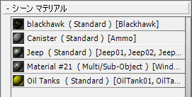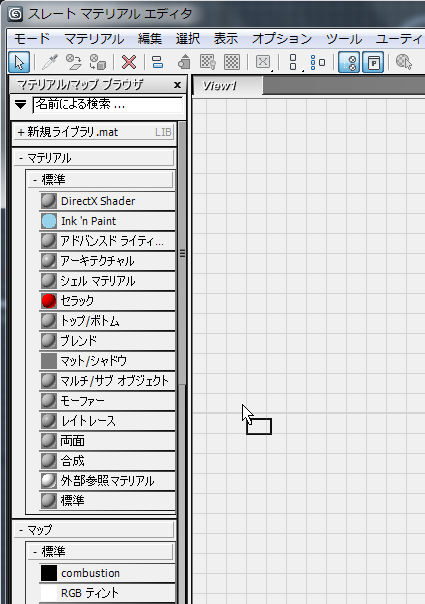 - 左の[マテリアル/マップ ブラウザ](Material/Map Browser)パネルで、[マテリアル](Material)