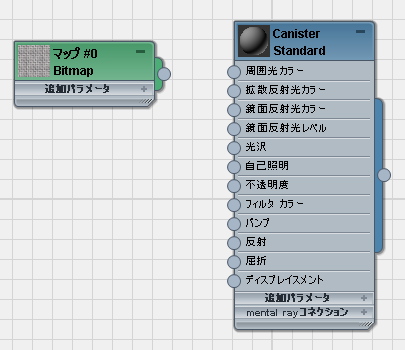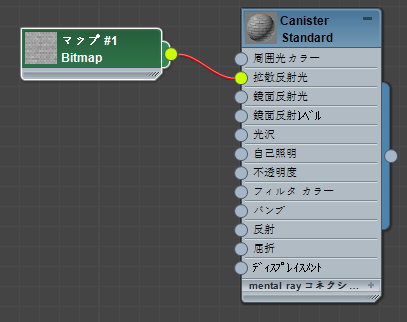 これで、ビットマップをマテリアルにワイヤリングできました。
