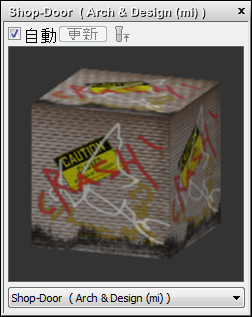 バンプ マッピングを使用してレンダリングした、完全に合成されたシャッター扉