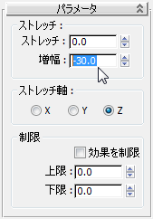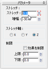 押し潰しと引き伸ばしをアニメートするには、3ds Max の[ストレッチ](Stretch)モディファイヤを使用すると便利です。