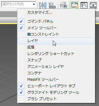 3ds Max によって[レイヤ](Layers)ツールバーが開きます。
