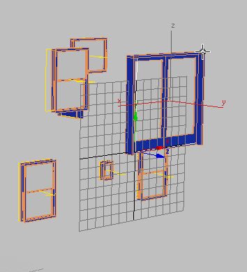 - PivotDoor02 オブジェクト(ビューポートの右上コーナーの右から 2 番目)を除くシーン内のすべてのドアおよび窓のオブジェクトについて同じ手順を繰り返します。
