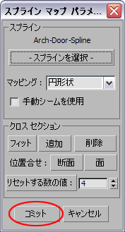- [スプライン マップ パラメータ](Spline Map Parameters)ダイアログ ボックスで[コミット](Commit)を選択し、これまでスプライン マッピングに加えた変更を受け入れます。