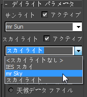 mental ray サンとスカイを使用するようにシステムを変更する: