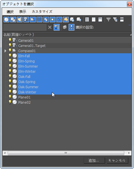 3ds Max によって[オブジェクトを選択](Select Objects)ダイアログ ボックスが開きます。