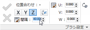 - [ブラシ設定](Brush Settings)パネルで[間隔](Spacing)を 40.00 単位に設定します。