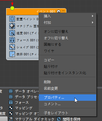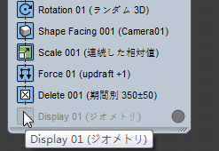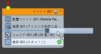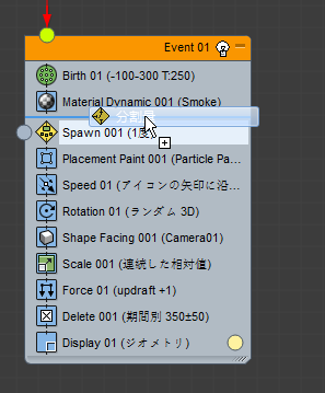 イベント表示の何もない部分にイベント(オペレータ、テストなど)をドロップすると、パーティクル フローは新しいイベントを作成します。最初は、新しいイベントにはドロップしたオペレータと Display オペレータが含まれています。