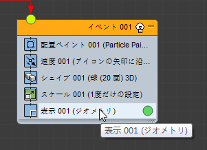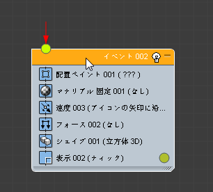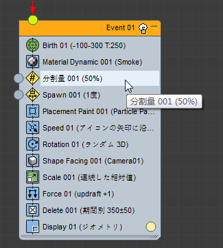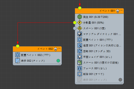 これで Event 002 は、Split Amount から送られるパーティクルを使用できるようになりました。