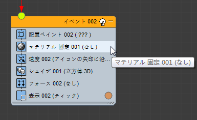 - [マテリアル 固定](Material Static)オペレータをコンテナからドラッグして Event 02 に追加します。