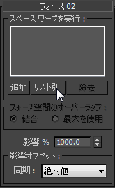 - [フォース スペース ワープを選択](Select Force Space Warps)ダイアログ ボックスで、Explosion スペースワープと Gravity001 スペースワープを Ctrl+クリックして選択し、[選択](Select)をクリックします。