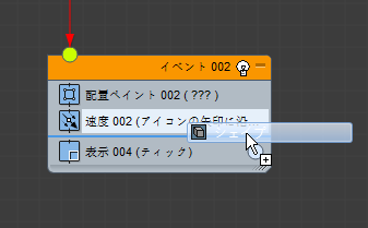 - Speed オペレータをコンテナからドラッグし、Event 02 にドロップします。