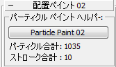 - Placement Paint のロールアウトで、[パーティクル ペイント ヘルパー](Particle Paint Helper)ボタンをクリックします(最初は「None」と表示されています)。