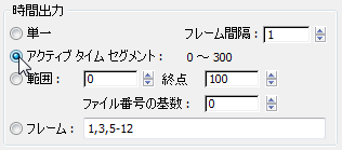 - [時間出力](Time Output)領域の[アクティブ タイム セグメント](Active Time Segment)を選択します。