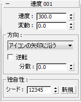 パーティクル ビューの右側にあるパラメータ パネルで、3ds Max によって、[発生](Birth)ロールアウトが[速度](Speed)オペレータのロールアウトに変わります。