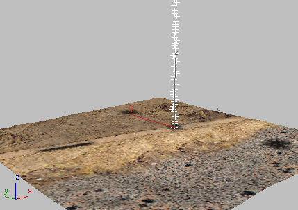 [風](Wind)スペース ワープ アイコンは、矢印が出ている正方形です。シェーディングされたビューポートでは正方形は地表によって隠れていますが、パース ビューポートで矢印がよく見えます。
