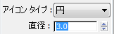 - また、[エミッション](Emission)ロールアウトで、円の[直径](Diameter)を 3.0 に設定します。