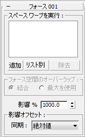 3ds Max のパラメータ パネルで、ロールアウトの右側に[フォース](Force)オペレータのパラメータが表示されます。