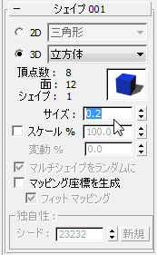 - 3ds Max に表示された[シェイプ](Shape)ロールアウトで[サイズ](Size)の値を 0.2 に変更します。