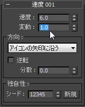 - Speed のロールアウトで、[速度](Speed)の値を 6.0 に、[変動](Variation)の値を 1.0 に変更します。