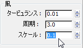 [風](Wind)領域で、設定を次のように変更します。 - [タービュランス](Turbulence) = 0.01