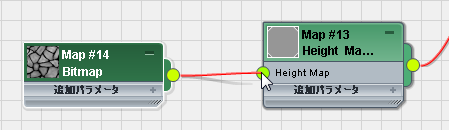 - 新しいビットマップ ノードから Height Map Displacement ノードの[Height Map]コンポーネントにワイヤリングします。