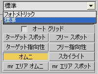 ([ライト](Lights))をアクティブにします。ドロップダウン リストから[標準](Standard)を選択し、次に[オムニ](Omni)をクリックしてアクティブにします。