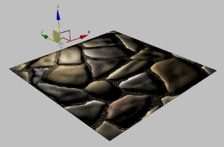 3ds Max では先ほど作成した法線バンプ マップが平面オブジェクトに適用されて表示されます。