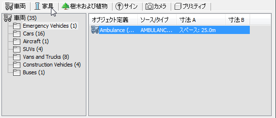 公共設備と車両は、このシェイプ(道路のセンターライン)との相対で配置されます。