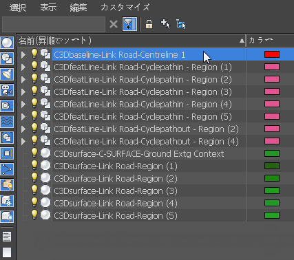 - シーン エクスプローラで、道路の中央ライン C3Dbaseline-Link Road-Centreline 1 を選択します。