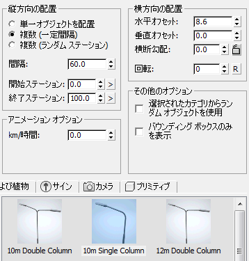 - [縦方向の配置](Longitudinal Placement)領域で[複数(一定間隔)](Multiple (Regular Interval))を選択し、[横方向の配置](Lateral Placement)領域で[水平オフセット](Horiz Offset)の値を 8.6 に変更します。