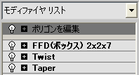 まずは前のレッスンで作成したオブジェクトをクローン作成します。次に、ツイスト、テーパ、DDF モディファイヤを保持しているクローンを使用し、ポリゴン編集テクニックにより建物のマリオンを作成します。