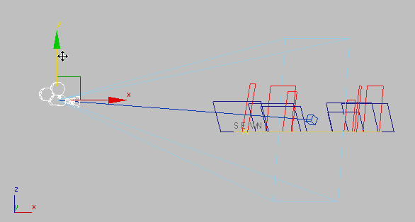 ([選択して移動](Select And Move))を有効にします。フロント ビューポートで Camera01 オブジェクトを地面の近くまで移動します。