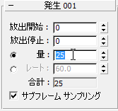 - [Birth 01]ロールアウトで、[量](Amount)の値を 25 に変更します。