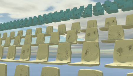 座席の各グループに、同じ汚れのマップが表示されます。オブジェクト ID 1 のシーン内のすべてのオブジェクトには dirt1.jpg マップ、オブジェクト ID 2 のシーン内のすべてのオブジェクトには dirt2.jpg マップというように、オブェクト ID ごとに異なるマップが適用されています。競技場のすべての座席グループに、6 つすべての汚れマップをランダムに組み合わせて配布する必要があります。