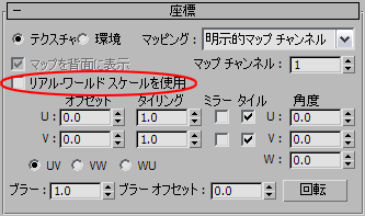 - [座標](Coordinates)ロールアウトで、[リアル-ワールド スケールを使用](Use Real-World Scale)がオフになっていることを確認します。